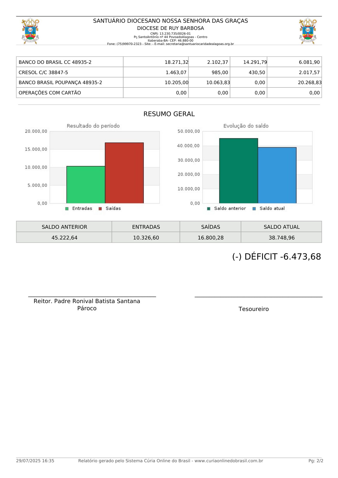 O portal da transparência é o canal onde o Santuário Diocesano da Caridade publica as prestações de contas, com toda a movimentação financeira do Santuário.
