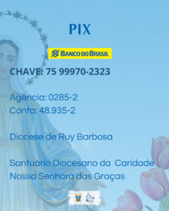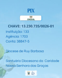 As doações em dinheiro, devem ser entregues somente na Secretaria do Santuário; Via banco, pode ser feito depósito ou PIX, no CRESOL ou Banco do Brasil.