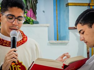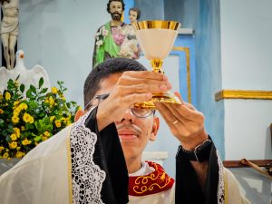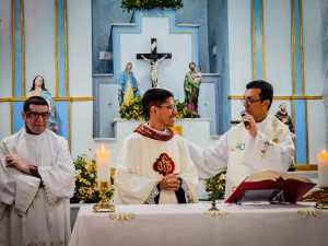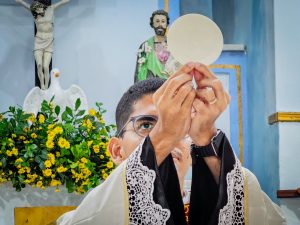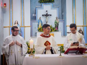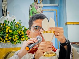 A sexta noite do novenário contou com a presença de padre Rafael Nascimento Freitas Oliveira, neo-sacerdote da Diocese de Ruy Barbosa, que presidiu a Eucaristia, e dos padres concelebrantes: padre Edinaldo Gonçalves e padre Ronival Batista Santana – reitor do Santuário.