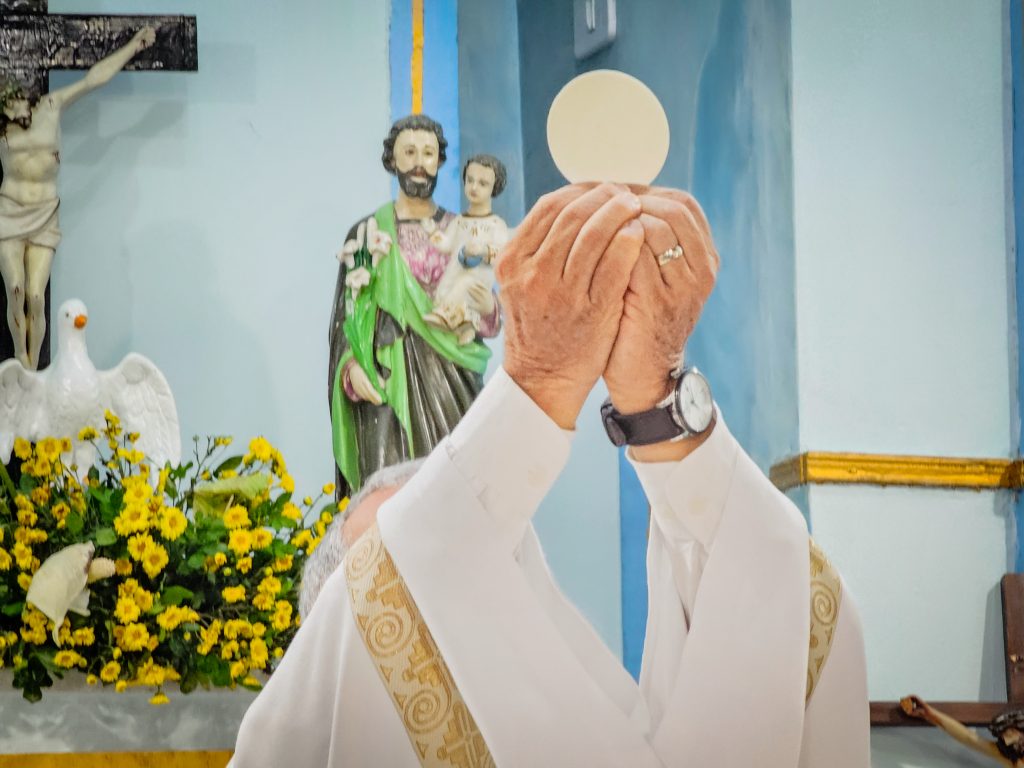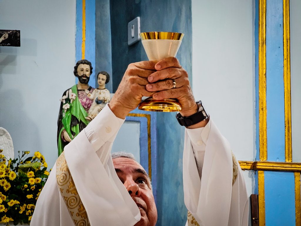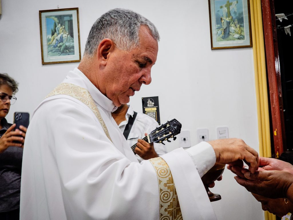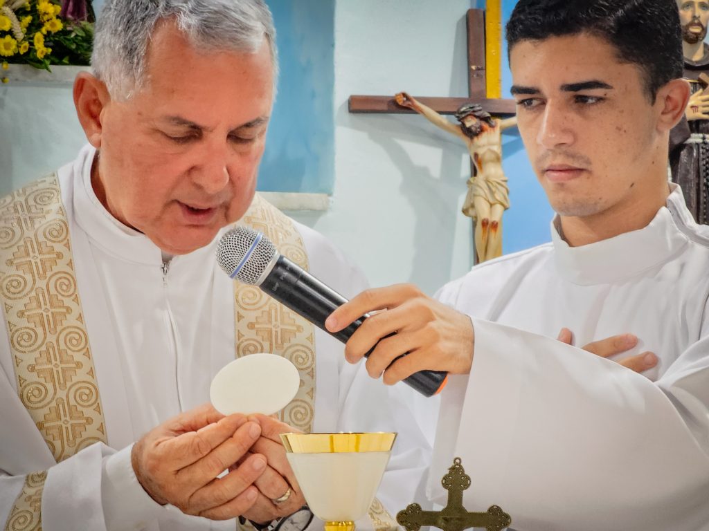 Contamos com a presença especial do padre Hélio Cézar Leal Vilas Boas –  Diocese de Cruz das Almas – que presidiu a celebração, e padre Ronival Batista Santana que foi o concelebrante.