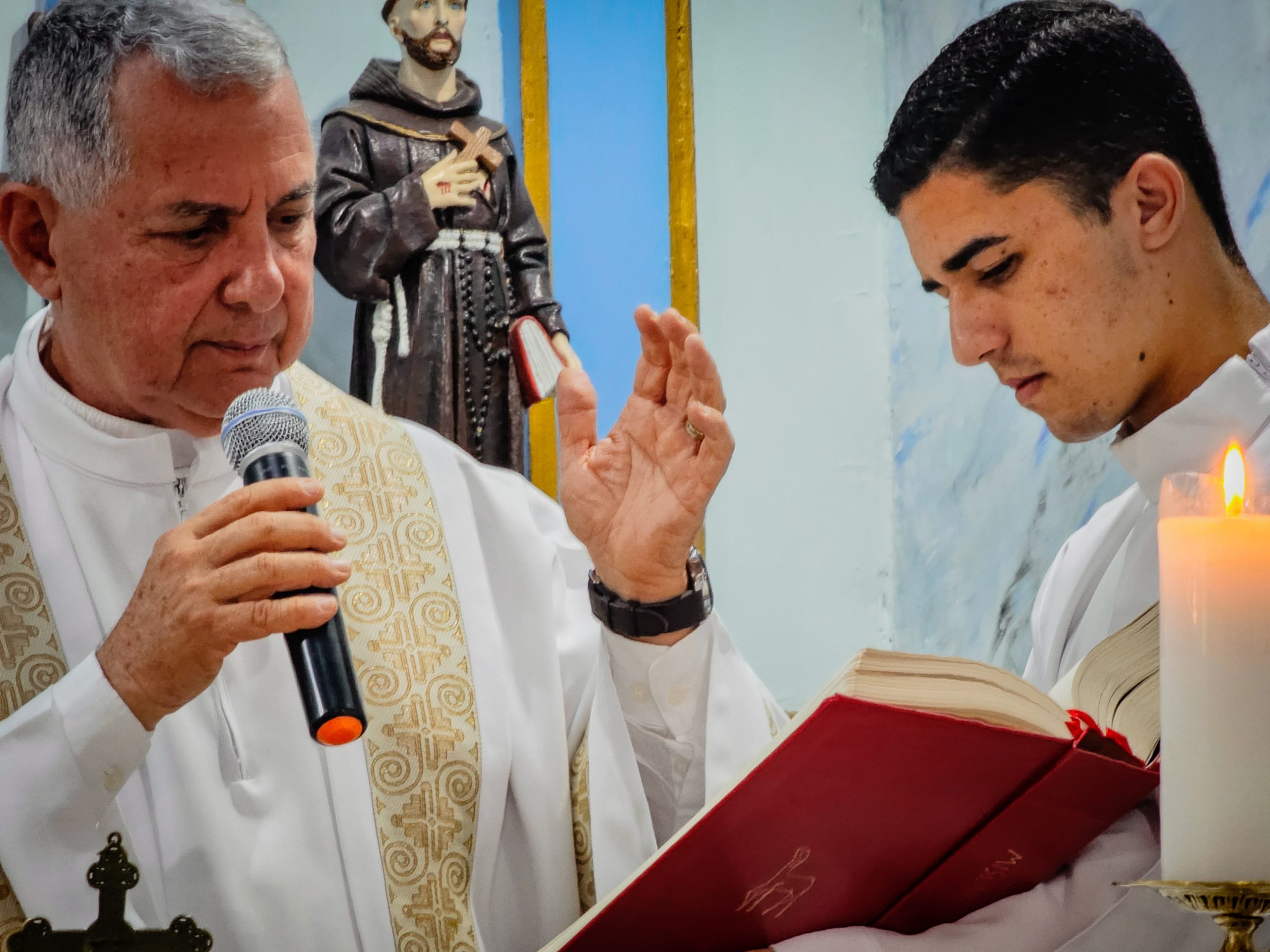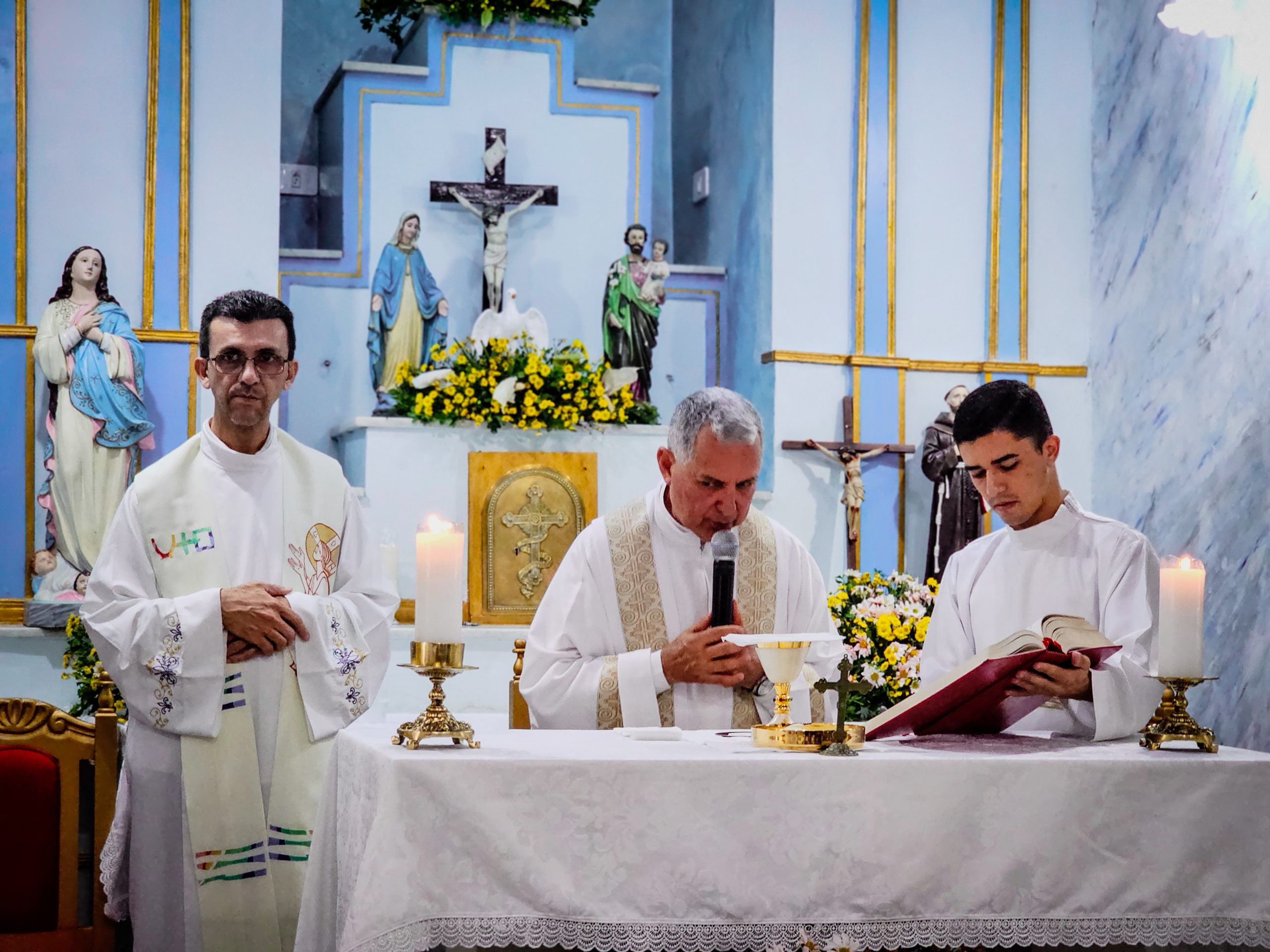 Contamos com a presença especial do padre Hélio Cézar Leal Vilas Boas –  Diocese de Cruz das Almas – que presidiu a celebração, e padre Ronival Batista Santana que foi o concelebrante.