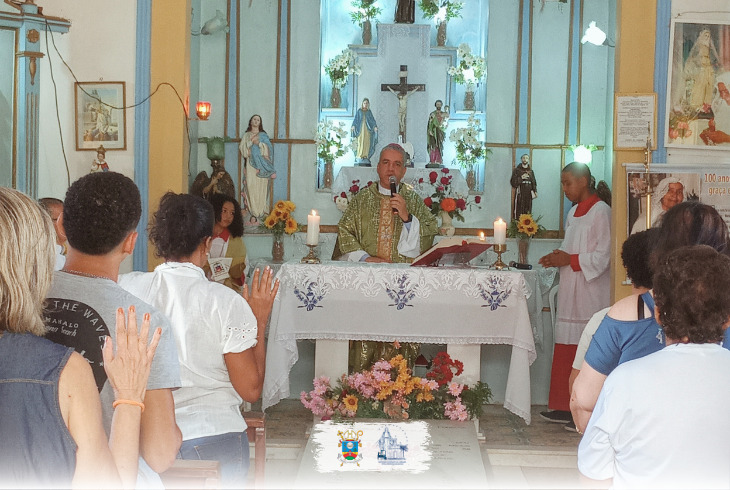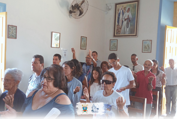 Dezenas de romeiros vindos de outras cidades, bem como a comunidade local, participaram com fé e devoção da celebração eucarística.